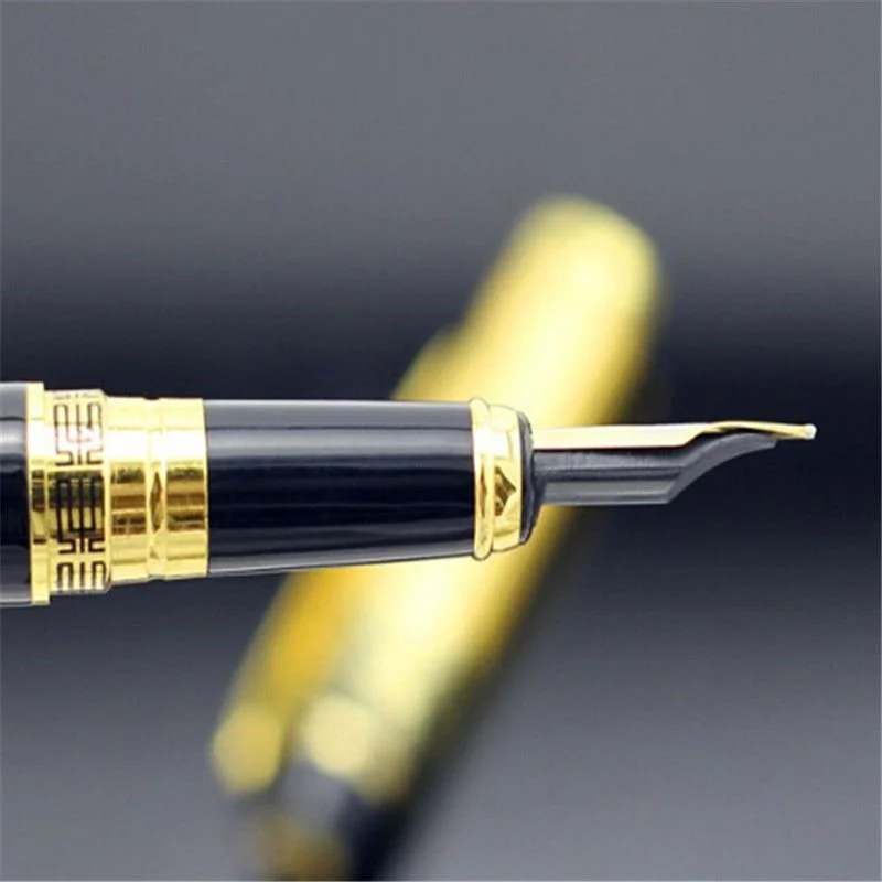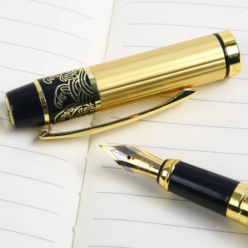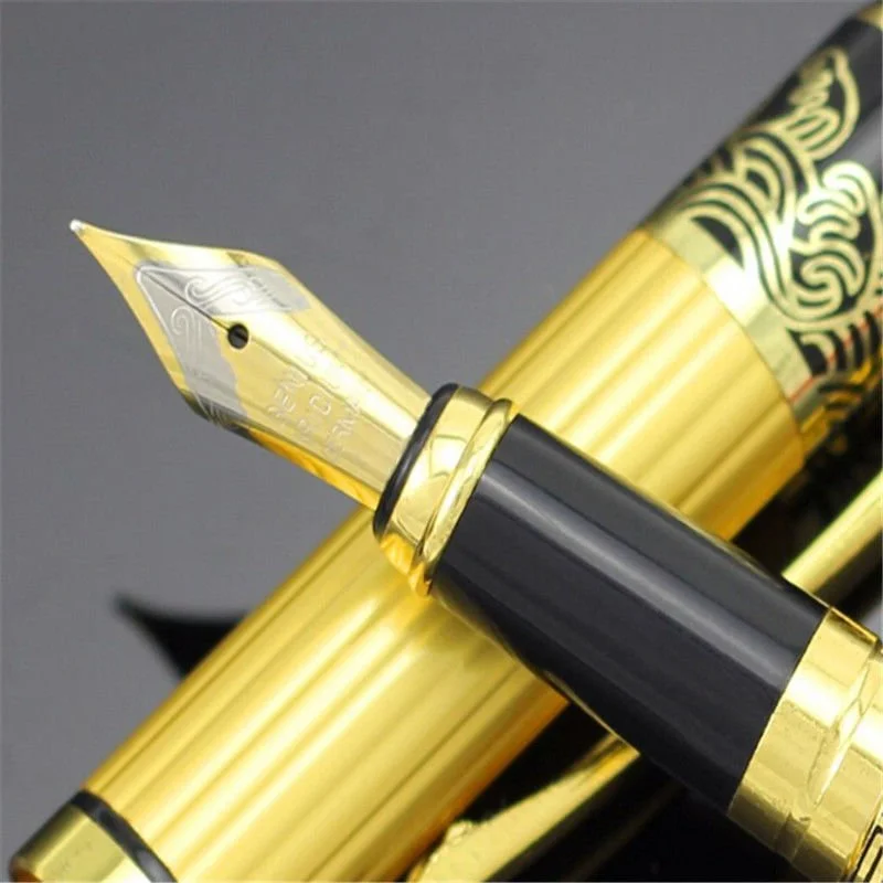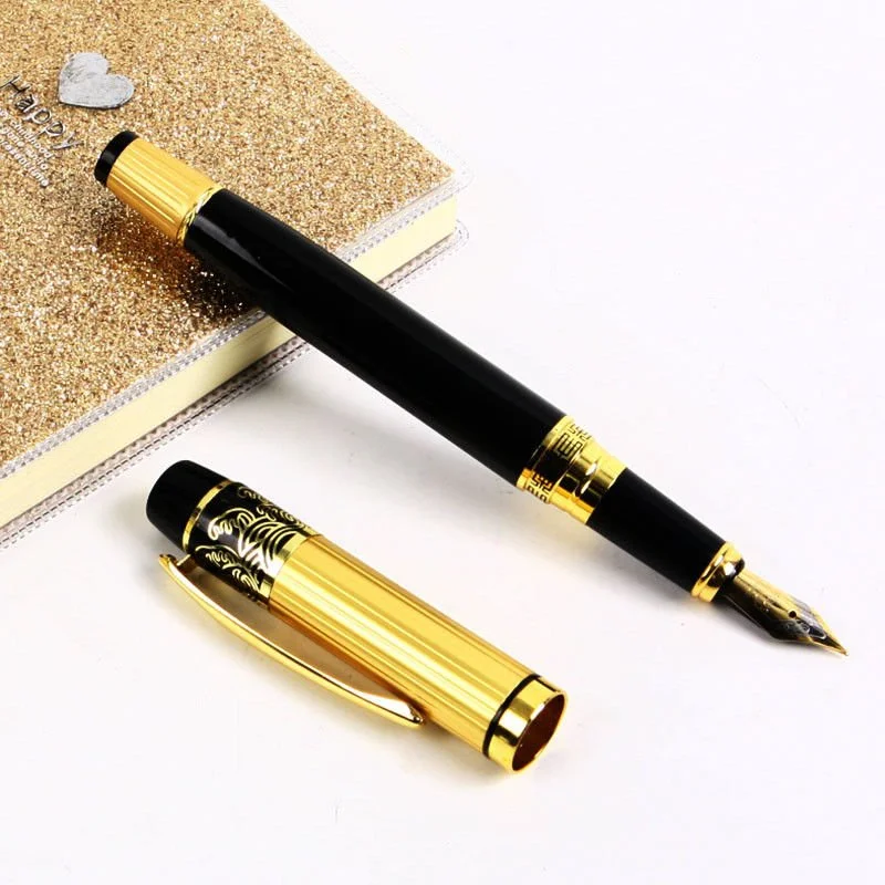 It is a high-quality fountain pen with a combination of black barrels and golden classic patterns.