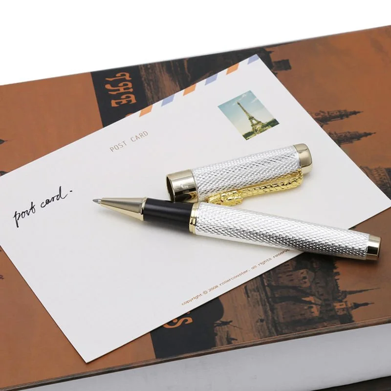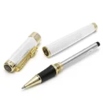 It is a premium ballpoint pen made of a subtle silver texture body.