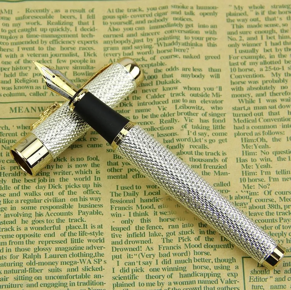 18K GP Silver Gold Textured Standard Nib Fountain Pen / Luxury Ink Pen