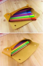 This is a premium pencil case made of stylish yellow invorator (artificial leather).