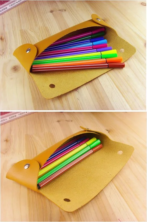 Invo Leather Pencil Case (Yellow) / Pencil Case Pen Pouch Portable