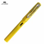 It is a yellow fountain pen that stands out for neatness.