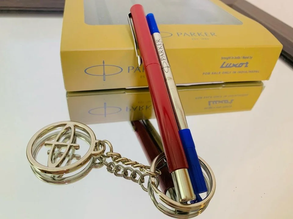 세련된 레드 바디에 포인트가 더해진 정품 Parker 만년필 세트입니다.